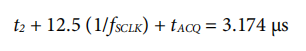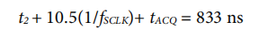 t2=10纳秒分钟,剩下的tACQ为365纳秒。这365 ns满足了tACQ 250 ns的要求。