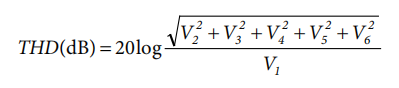 总谐波失真是谐波的均方根和与基波的比值。它被定义为: