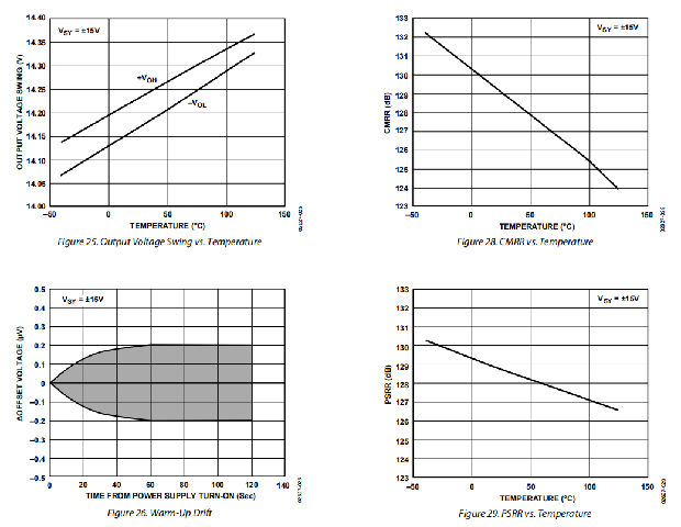 OPx177的指定工作温度范围与塑料表面贴装封装中的任何类似设备一样宽。这一点越来越重要,因为印刷电路板和整个系统尺寸不断缩小,导致内部系统温度上升。与OP177相比,功耗降低了四倍,带宽和转换速率增加了两倍。低功耗和非常稳定的性能对温度也起到了减少预热漂移误差的作用。