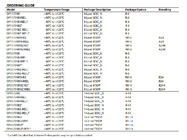 与以前具有极低偏置电压的高压放大器不同,OP1177(单)和OP2177(双)放大器采用微型8引线表面贴装MSOP和8引线窄SOIC封装。OP4177(quad)提供TSSOP和14引线窄SOIC封装。此外,MSOP和TSSOP中的规定性能与SOIC封装中的性能。MSOP和TSSOP仅提供磁带和卷盘。
