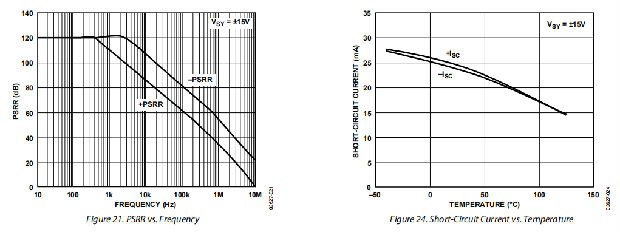 5 kΩ保护输入电压超过任一电源27 V。有关噪声与源电阻的更多信息,请参阅THD+噪声部分。