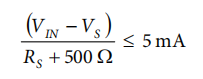 如果电压超过电源2.5 V以上,则使用一个与输入串联的附加电阻器。电阻器的值可根据公式确定: