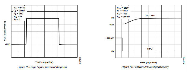 恢复时间在许多应用中都很重要,尤其是在运算放大器必须在大的瞬态电压下放大小信号的情况下。
