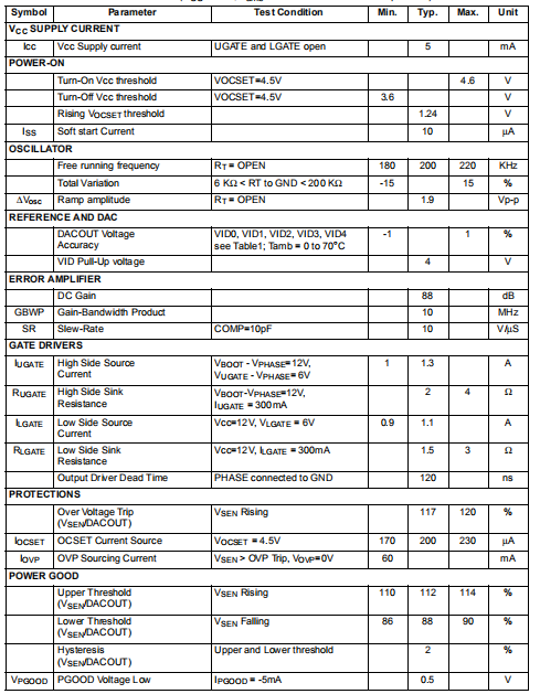 电气特性(VCC=12V,环境温度=25°C,除非另有规定)