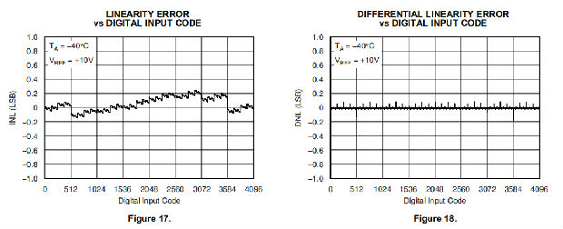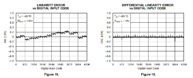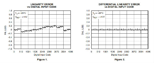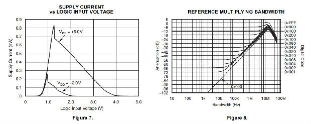 DAC7811具有优良的4象限乘法特性,具有10MHz的大信号倍频带宽。施加的外部参考输入电压(VREF)决定满标度输出电流。集成反馈电阻(RFB)提供温度跟踪和满标度电压输出时,结合外部电流电压精密放大器。