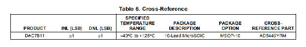 DAC7811有一个行业标准的引脚。表5提供了交叉引用信息。