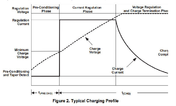 bqTINY II支持适用于单电池组的精密锂离子、锂离子充电系统。图3显示了典型的电荷分布图、应用电路,图4显示了操作流程图。