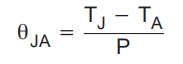 最常见的封装热性能测量方法是从器件连接处到封装表面(环境)周围空气的热阻抗(θJA)。θJA的数学表达式为: