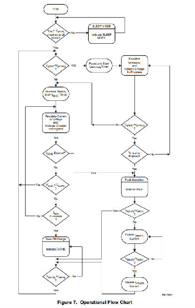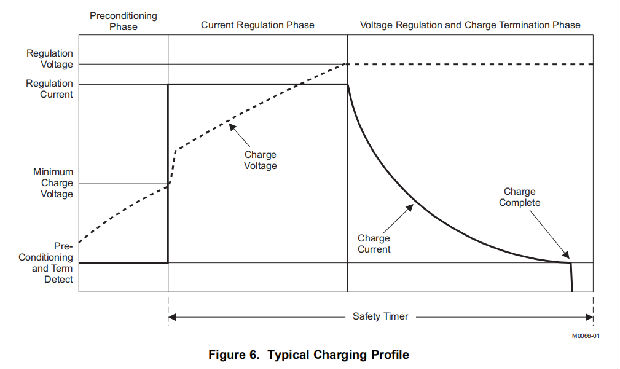 该装置支持适用于单电池的精密锂离子、锂离子电池充电系统。图6显示了一个典型的电荷分布图,图7显示了一个操作流程图。