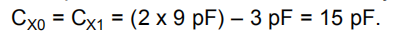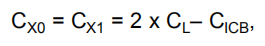 其中CL是为晶体单元指定的晶体负载电容器,CICB是设备的输入电容,包括板电容(PCB的杂散电容)。