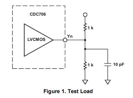 CDC706有三个电源引脚,VCC、VCCOUT1和VCCOUT2。VCC是设备的电源。它的工作电压为3.3伏。VCCOUT1和VCCOUT2是输出的电源引脚。VCCOUT1为输出Y0和Y1供电,VCOUT2为输出Y2、Y3、Y4和Y5供电。两个输出电源可以是2.3伏到3.6伏。当输出电压低于3.3伏时,输出电流驱动受到限制。
