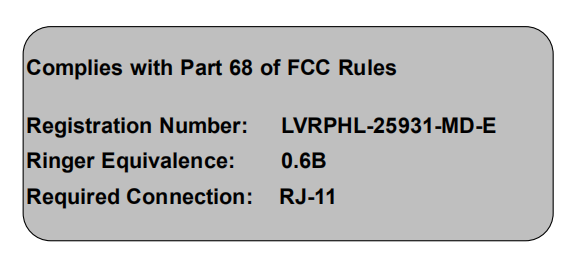 6.提供的FCC注册号(包括REN)必须在最终用户产品的外部可见。见第3节。