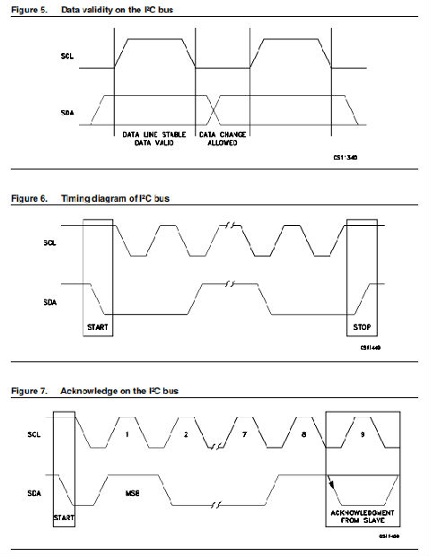 如图5所示,在时钟。当时钟信号改变时,数据线的高低状态才会改变在SCL线上是低的。