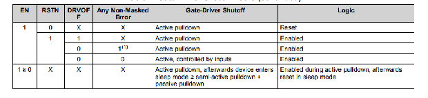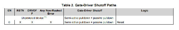 表2总结了EN、RSTN和DRVOFF引脚的可能状态以及对门驱动器的影响。