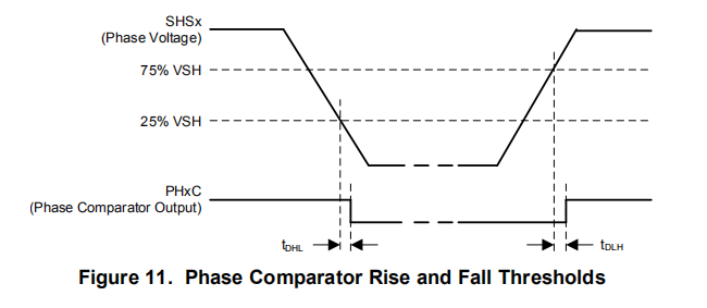 •测量输入IHSx/ILSx和相位比较器输出PHxC之间的时间