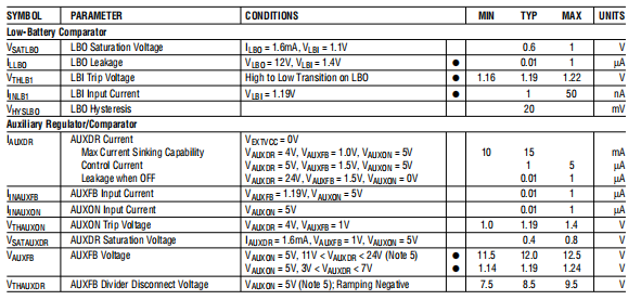注5:辅助调节器在伺服回路中进行试验到误差放大器的平衡点。对于具有VAUXDR>9.5V,VAUXFB使用内部电阻分压器。查看应用程序信息科。