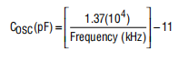注4:通过测量COSC电荷和放电电流(IOSC)和应用公式:fOSC(kHz)=8.4(108)[COSC(pF)+11]–1(1/ICHG+1/IDISC)–1个