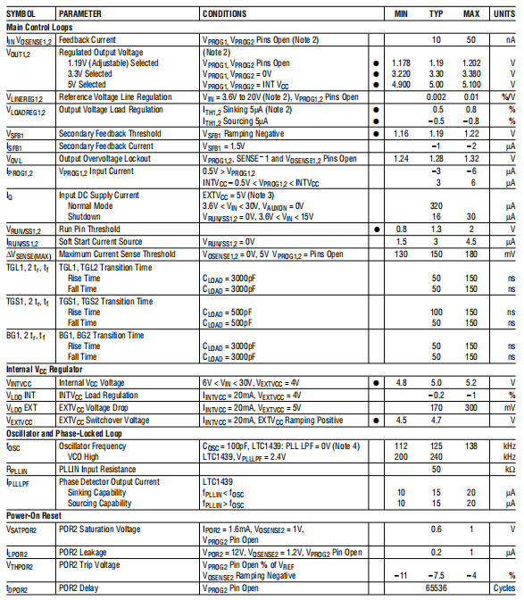 电气特性TA=25°C,VIN=15V,VRUN/SS1,2=5V,除非另有说明。