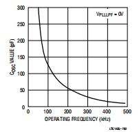 图中给出了选择COSC与频率的关系图2随着工作频率的增加,栅极电荷增加损失会更大,降低效率(见效率注意事项)。建议的最大开关量频率为400kHz。当使用图2可同步应用,选择COSC对应频率大约低于中心30%频率。(参见锁相环和频率同步化)。