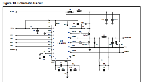 因为在感兴趣的范围| Gloop |>>1。为了得到一个平坦的形状,考虑的关系自然会随之而来。应用思路:1.100V至1.850V/25A图10显示了电流容量为25A的1.100V至1.850V转换的应用示意图。由于器件采用高栅极驱动,高、低压侧的mosfet可以使用三个以上高压侧建议使用STS11NF30L(30V,9mW典型值@Vgs=10V)mosfet,同时建议使用四种mosfet作为低压侧开关。