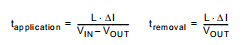 电感值由瞬态响应时间、效率和成本之间的折衷来定义还有尺寸。必须计算电感器以维持输出,并维持输入电压变化纹波电流∆IL在最大输出电流的20%和30%之间。电感值可通过以下关系式计算: