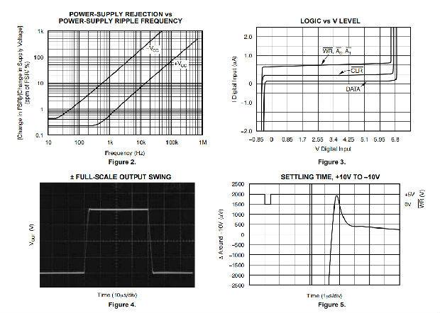 数字接口速度快,最小写入脉冲宽度为60ns,双缓冲,并具有清晰的功能,可将模拟输出重置为双极零。