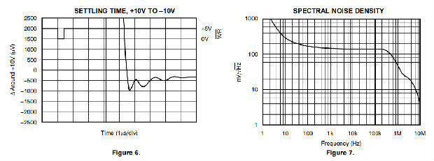 DAC712的模拟输出具有305μV(–96dB)的LSB大小。在感兴趣的频率范围内,D/A转换器的噪声底限必须保持在该水平以下。DAC712噪声频谱密度(包括由内部基准产生的噪声)如典型特性部分所示。