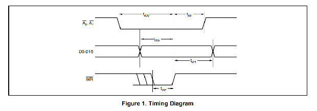 A1是D/A闩锁的启用。WR用于将数据选通到由A0和A1启用的锁存器中。参考图8和图1的方框图。