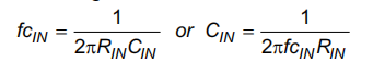 这些电容器与输入电阻RIN形成高通滤波器。截止频率用方程式1计算。对于该计算,使用的电容是输入阻塞电容器,电阻是从表3中选择的输入电阻。当两个值中的一个给定时,就可以确定频率和/或电容。