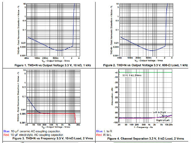 –THD+N<0.003%,负载为10-kΩ,增益为-1×时