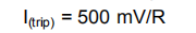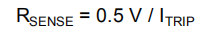 当引脚感应电压超过VTRIP(0.5 V)时,检测到过电流。RSENSE电阻器的大小应能设置所需的ITRIP电平。