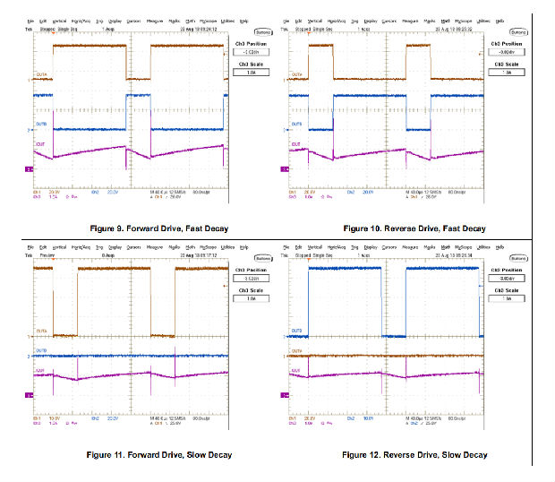 这个电流路径是通过高侧源DMOS驱动器,电机绕组,和低侧下沉DMOS驱动器。功耗I2R在一个源和一个接收器DMOS驱动器中损失,如等式5所示。