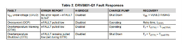 DRV8801-Q1设备可完全防止VBB欠压、过电流和过热事件。