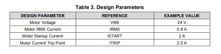 为防止误跳闸,ITRIP必须高于正常工作电流。启动过程中的电机电流通常比稳态旋转大得多,因为初始负载转矩更高,并且没有反电动势会导致电机绕组上产生更高的电压和额外的电流。