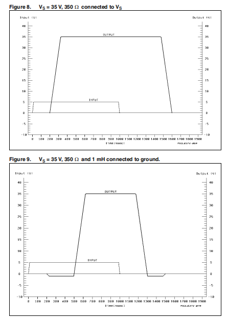 图6有助于理解这种顺序。事实上,一个纯电阻负载连接到Vs/2无寄生元素干扰。波形可以明显减少很容易解释,如果负载不是完全对称的情况下,如下所示。例如,将电阻负载连接到接地或Vs上就足够了,如图7和图8–显示隐藏所描述的一些切换阶段。如果负载接地,波形保持在地上的时间与输出一样长工作台处于高阻抗状态;当负载连接到Vs时,波形将尽可能长时间停留在电源电压附近。如果一个输出负载是由一个电感和一个电阻串联而成的,则电感在每次产出转型的开始都会产生“预期”的效果