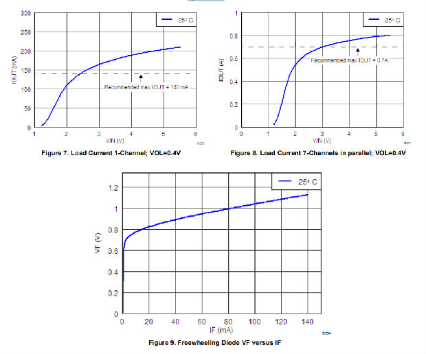 –所有7个通道并联时的1A电流输出