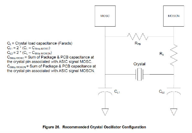 DLPC350需要一个外部参考时钟为其内部PLL供电。该基准可以通过晶体或振荡器提供。DLPC350接受32 MHz的参考时钟,最大频率变化为100 ppm(包括老化、温度和微调元件变化)。当使用晶体时,还需要几个分立元件,如图26所示。