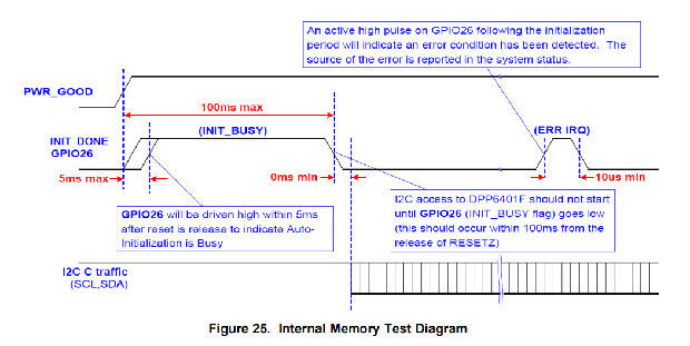 •配置时钟后,执行内部存储器测试。请参见图25并注意GPIO26是INIT_DONE信号。