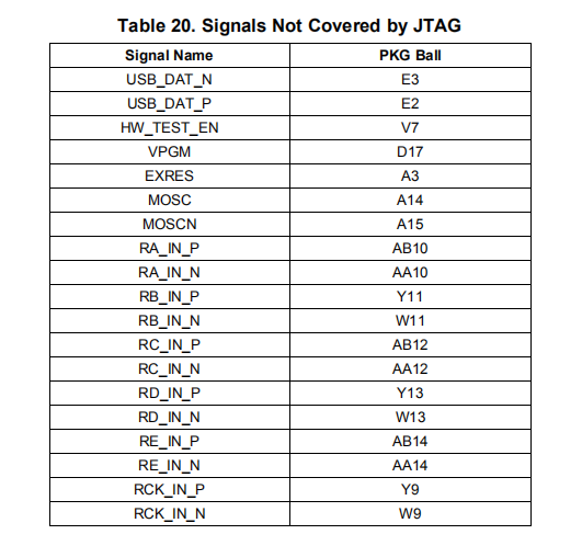 DLPC350还为所有I/O信号、非数字I/O和一些特殊信号提供JTAG边界扫描支持。下表定义了这些例外情况。