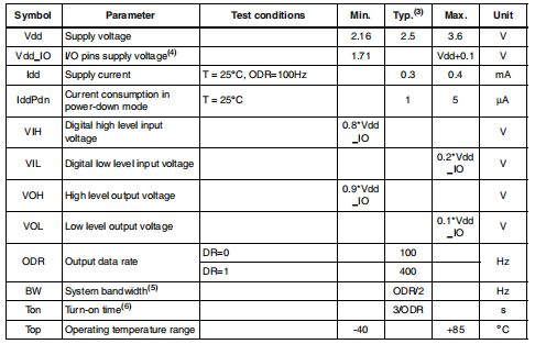 10.ODR是输出数据速率。规格见表4