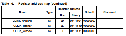 点击和双击识别功能有助于创建人机界面软件过载很少。该设备可配置为在在任何方向上敲击时使用专用销。如果传感器暴露在单一输入刺激下,它会在惯性上产生一个中断请求中断引脚(INT1和/或INT2)。一个更高级的功能允许生成和中断当两个事件之间有可编程时间的“双击”时请求“鼠标键式”使用。用户可根据预期振幅和刺激的时间。
