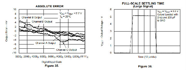 当电源关闭模式激活时,所有线性电路都会关闭。但是,在断电时,DAC寄存器的内容不受影响。对于VDD=5 V,退出断电的时间通常为2.5μs;对于VDD=3 V,退出断电的时间通常为5μs。(有关更多信息,请参阅典型曲线部分。)