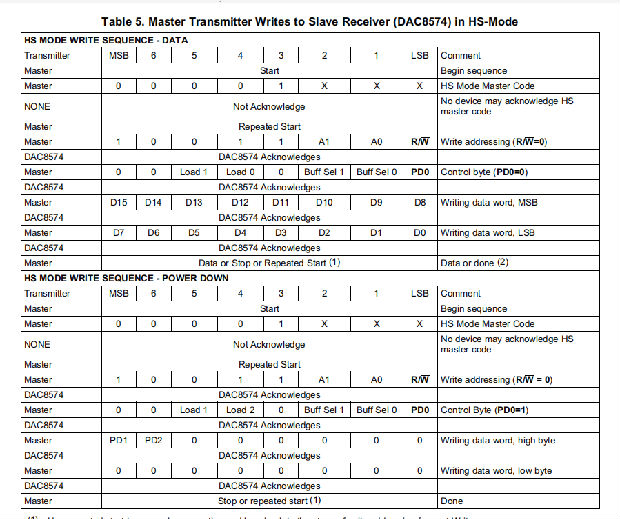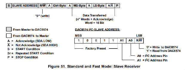 在标准/快速模式下,主发射机写入从接收机(DAC8574)