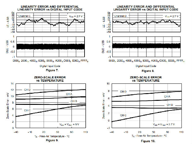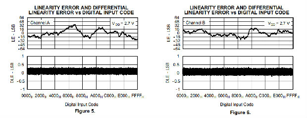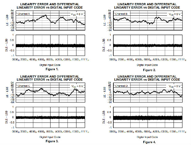 DAC8574积分线性度误差在±5mV范围内,因此对总的DAC只产生次要影响错误。使用DAC8574的分段线性近似、非易失性存储器、积分线性误差也可进行数字校正。有关详细信息,请咨询TI应用工程部。