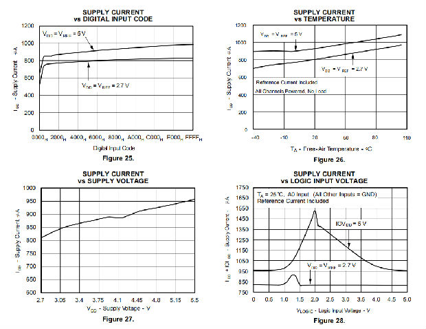 DAC8574通常在VDD=5V时消耗225μA,VDD=3V时消耗200μA,包括参考电流消耗。附加如果VIH<<VDD,数字输入端可能会发生电流消耗。对于最有效的电源操作,建议在DAC的数字输入端使用CMOS逻辑电平。在断电模式下,典型的电流消耗为200毫安。在向DAC发出断电命令后10至20ms的延迟时间通常足以使断电电流降至10μA以下。