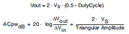 该块的增益由两个三角波参考的振幅定义;更精确地说,功率放大器块的增益是两个参考信号的振幅。实际上,误差放大器输出电压的变化会产生更大的占空比变化当两个三角形的振幅较低时,两个输出输出的周期波浪参考。当输入电压等于振幅时,占空比的最大值为100%在两个三角参照系中。该模块的传递函数包括输出占空比与三角形参考的振幅。