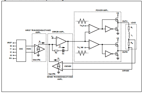 为了有一个灵活的系统能够驱动具有不同电气特性的电机,误差放大器的非反相输入和输出可用。在这些引脚上连接一个外部RC补偿网络,可以调整电流控制回路的增益和带宽