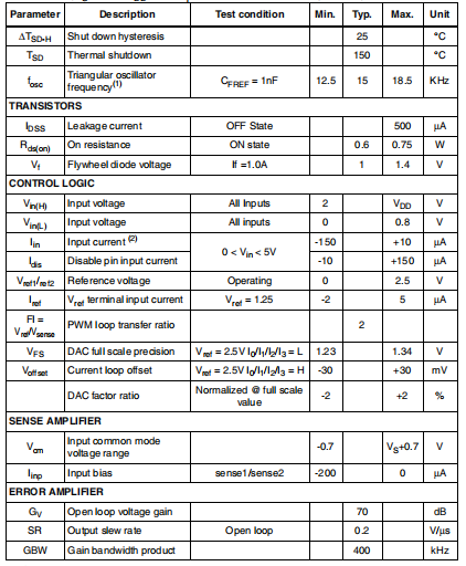 L6258E是一种双全桥电机控制在BCD技术中实现的应用驱动双极绕组的能力步进电机或双向控制两个直流马达。L6258E和一些外部部件形成a完整的控制和驱动电路。它有很高的高效相移斩波最低电流控制时的低电流纹波电平,使该设备成为步进机的理想选择以及直流电机。功率级是一个双DMOS全桥能够维持高达40V的电压,包括电流二极管再循环输出电流连续模式下每个绕组的容量为1.2A,峰值启动电流高达1.5A.A热保护电路禁用输出如果芯片温度超过安全限值