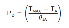 对于给定的θJA,最大功耗如图28所示,并通过以下公式计算: