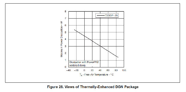 BUF11705在TSSOP-28 PowerPAD包中提供,可显著提高功耗能力。这允许在一个包中安全地处理大量通道。